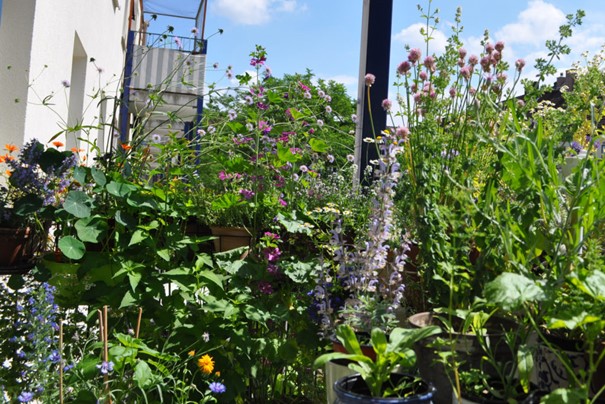Bal­ko­ne, Ter­ras­sen und Fens­ter­sim­se sind Gär­ten im Mini­for­mat. Mit ein­hei­mi­schen Pflan­zen in Töp­fen kön­nen dort ver­schie­dens­te natur­na­he Lebens­räu­me nach­ge­bil­det wer­den. So kön­nen sich