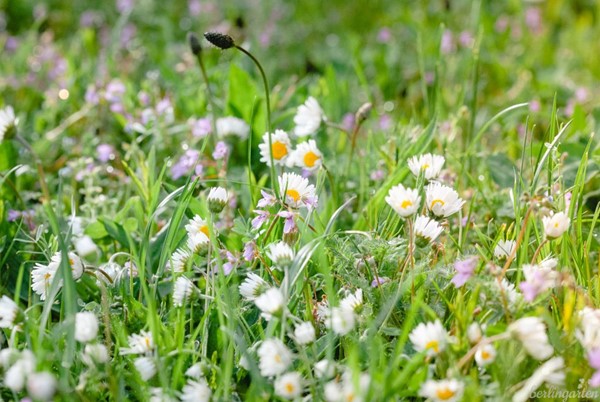 Blu­men­ra­sen sind eine Mischung aus nutz­ba­ren, regel­mäs­sig gemäh­ten Rasen­flä­chen und einer Blu­men­wie­se. Die Samen­mi­schun­gen bestehen aus ein­hei­mi­schen Grä­sern und Kräu­tern. Dabei ist der Gras­an­teil deut­lich höher als bei einer Blu­men­wie­se. Die Flä­chen wer­den regel­mäs­sig gemäht und kön­nen dadurch auch genutzt wer­den. Blu­men­ra­sen­flä­chen wer­den über­all dort ange­legt, wo eine regel­mäs­si­ge Nut­zung der Flä­che erwünscht, jedoch kei­ne sehr hohen Ansprü­che gestellt wer­den an die Belastbarkeit.
